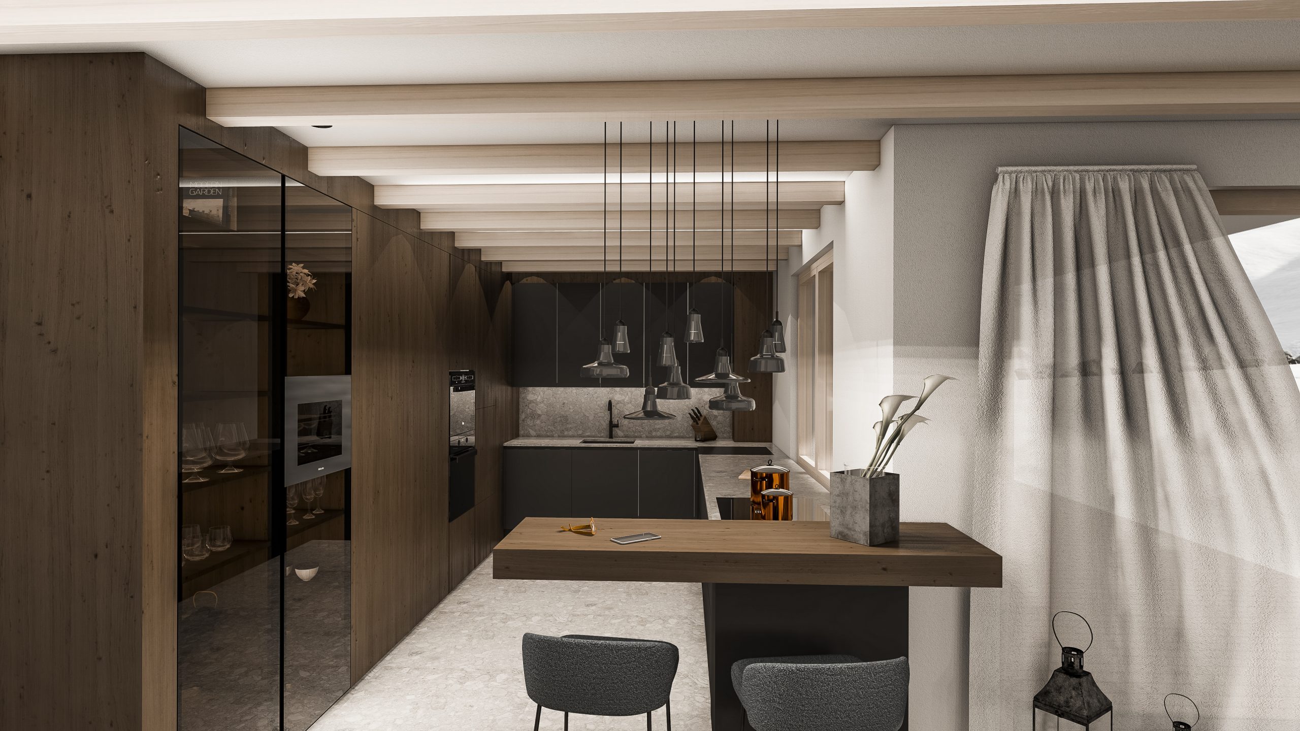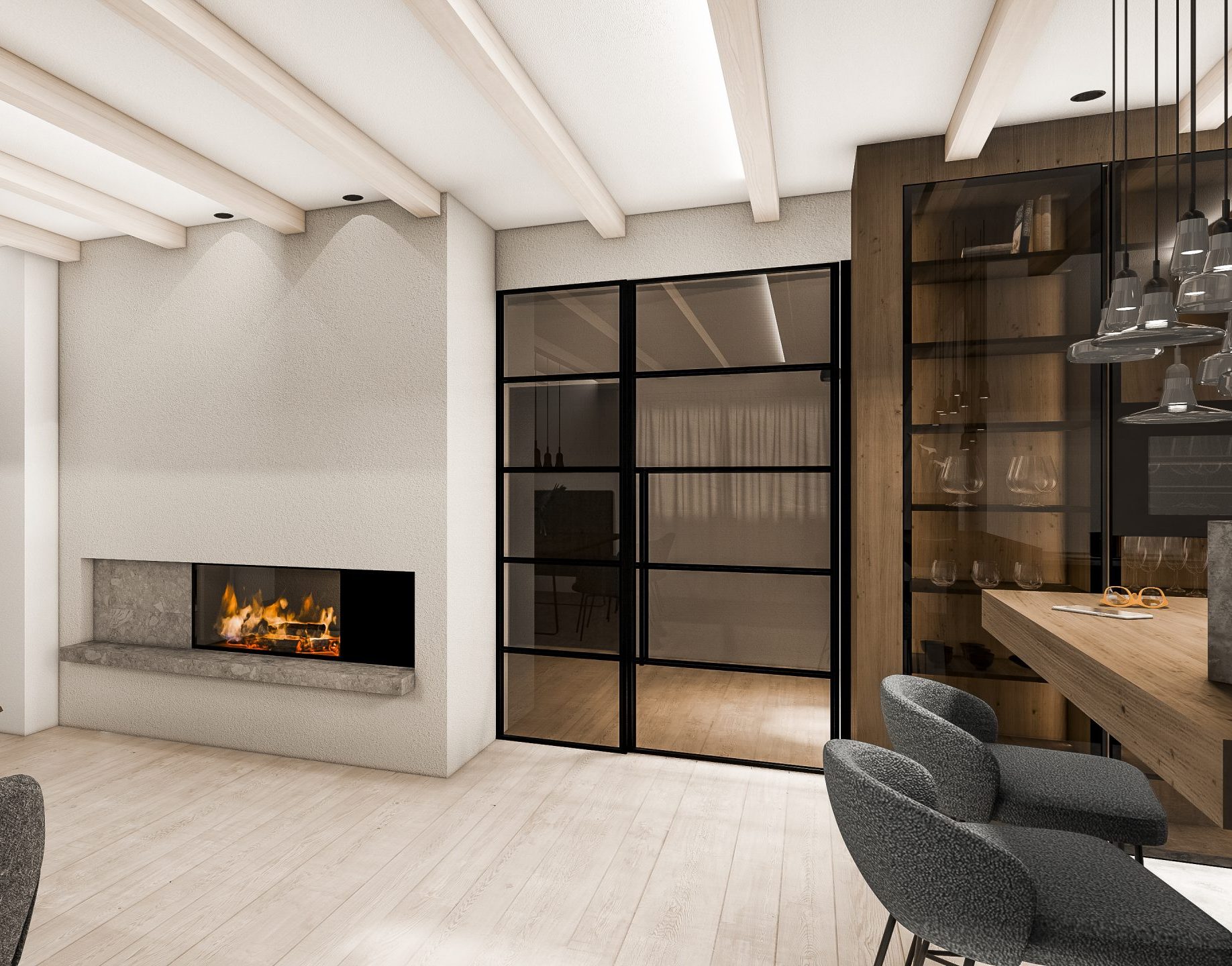 Inspiriert vom Elternhaus, einem alten Bauernhaus, war es den Kund:innen wichtig, in einer warmen, freundlichen und trotz allem zeitlosen und modernen Umgebung zu wohnen. Unter anderem sorgen hier Holzelemente für die gemütliche Atmosphäre.