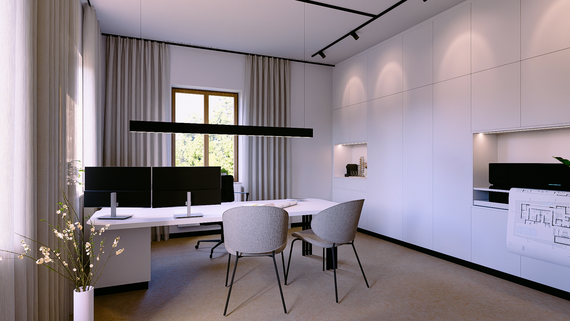 Im März 2024 habe ich mein neues Büro bezogen - und ich verbringe immer noch jeden Tag gerne hier. Eine helle und minimalistisch gestaltete Umgebung hilft mir, kreativ zu sein. Genau das spiegeln diese vier Wände wider.